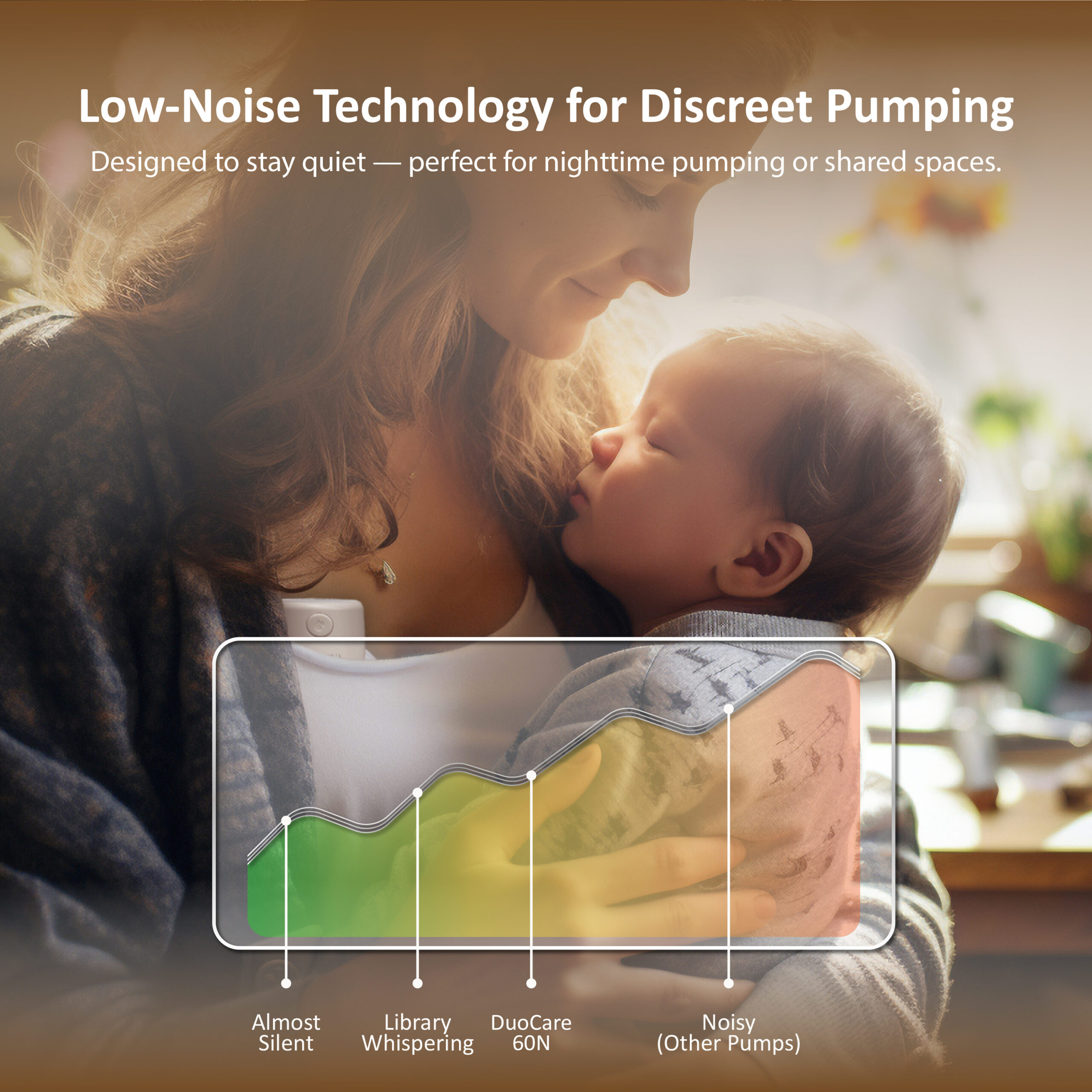 Delivering stronger, steadier suction, the DuoCare 60N wearable breast pump uses an enhanced motor to support a more comfortable and productive pumping experience. With 4 customizable modes, 15 adjustable suction levels, and powerful suction up to 300 mmHg, it adapts seamlessly to your body’s rhythm while maintaining gentle, efficient milk expression.