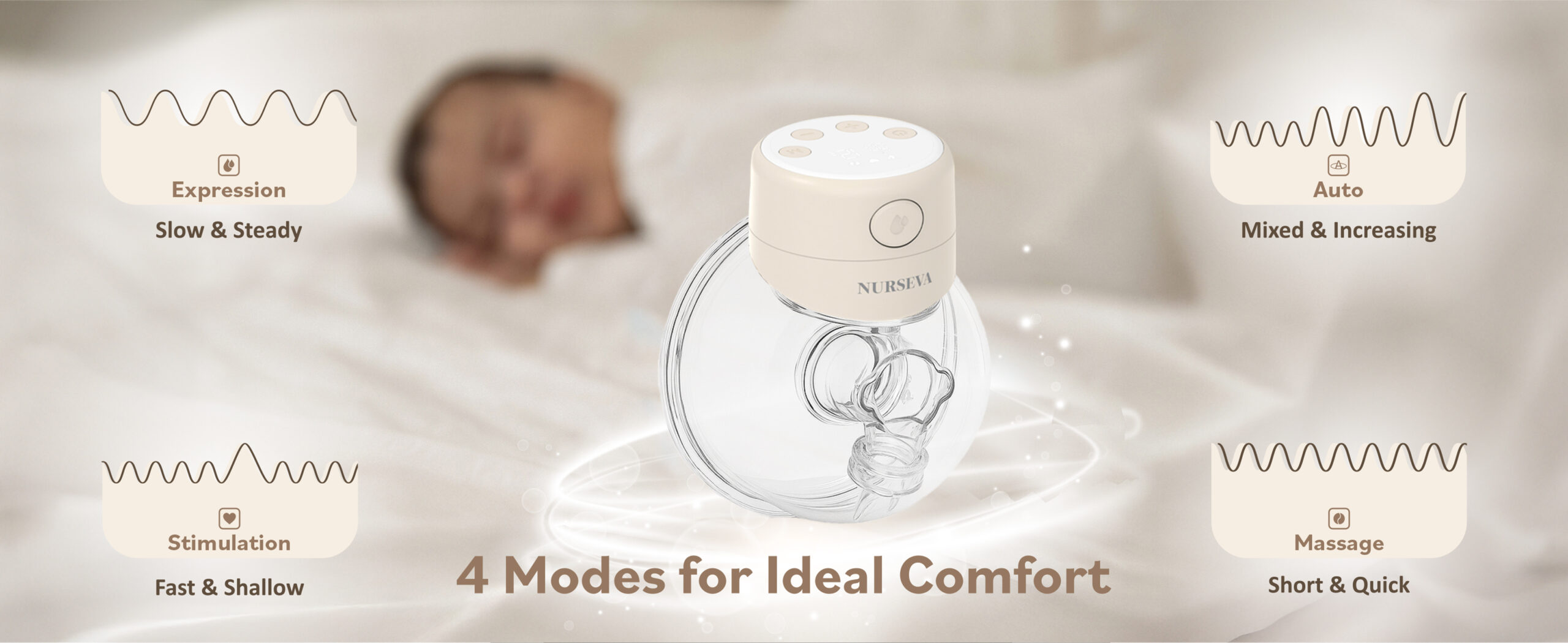 DuoCare 60N offers four thoughtfully designed modes, each crafted to support your body’s natural rhythm and ensure a smooth, comfortable pumping experience. Choose Expression for slow and steady flow, Stimulation for fast and shallow pulses that help trigger let-down, Massage for short and gentle relief, or Auto for a mixed pattern that gradually increases intensity. Whatever your needs, each mode adapts seamlessly to help you pump with ease and confidence.